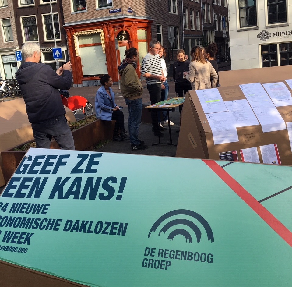 On Tuesday morning, May 14, the manifestation Geef Ze Een Kans (Give Them a Chance) kicked off early on the Elandsgracht. This was to send a signal to property owners to take their responsibility in a city where more and more people are being left out.
